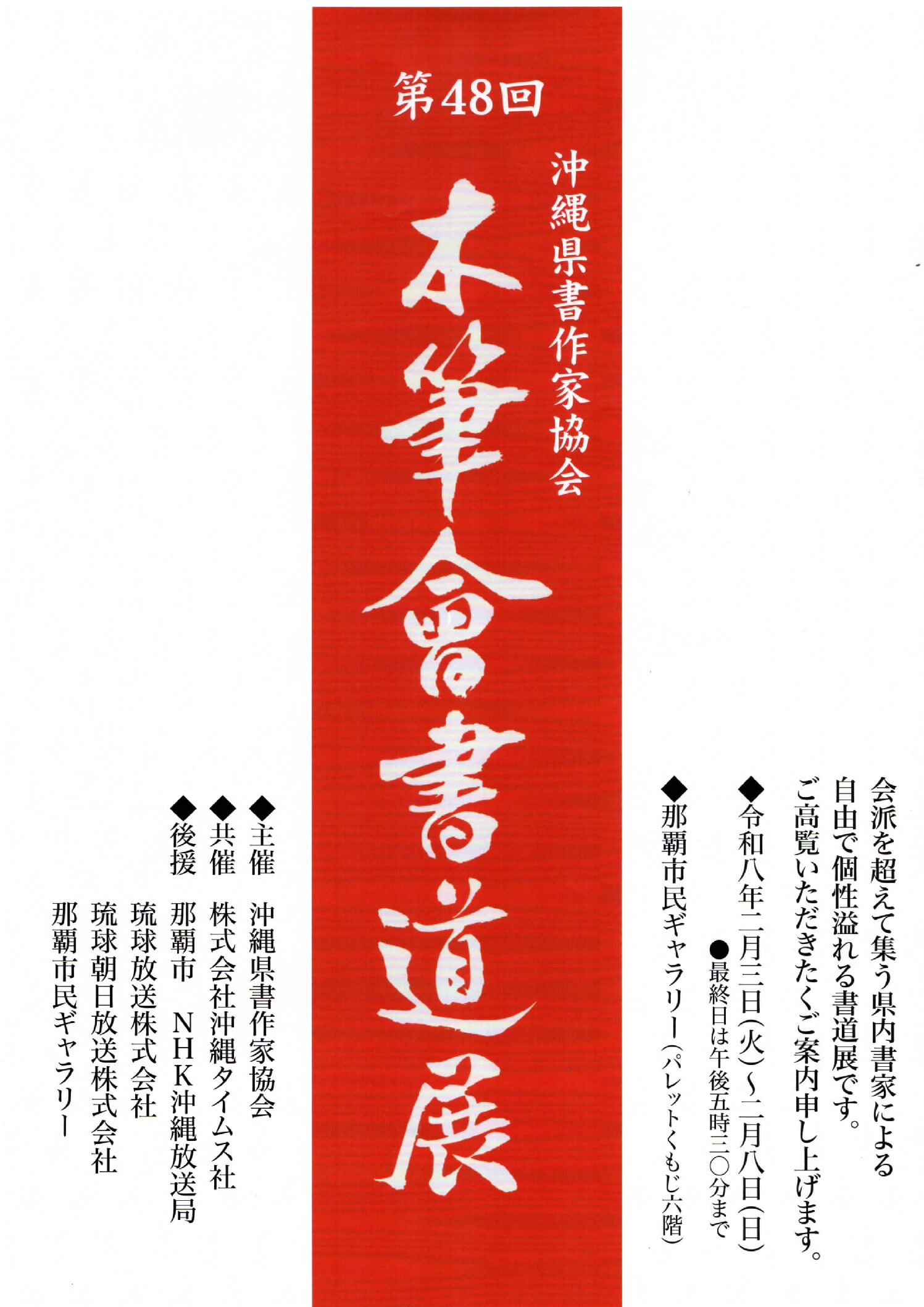 那覇市民ギャラリー naha civic gallery ギャラリーの 利用について ご利用前のご案内や申請の流れなど申請に必要な情報をご案内しております ギャラリーの 空き状況 空き状況の反映には時間を要しますので、最新の状況は電話でお問合せください お知らせ information 一覧を見る 2026年01月24日 ギャラリー空き状況【1月24日更新】 詳しく見る 2026年01月13日 現在の受付【1月13日更新】 詳しく見る 2025年12月09日 1月催物案内【12月9日更新】 詳しく見る 2025年12月25日 2月催物案内 詳しく見る 2025年04月01日 那覇市民ギャラリー来館時のお願い 詳しく見る 催し物案内 events 一覧を見る 2026年01月27日 第66回沖縄県立首里高等学校染織デザイン科卒業作品… 詳しく見る 2026年01月27日 Atmosphere2 ゆらゆいゆい 同窓グルー… 詳しく見る 2025年02月03日 第48回沖縄県書作家協会 木筆會書道展 詳しく見る 2025年02月10日 第7回 BB 作品展 詳しく見る 2025年02月10日 第22回沖縄県写真協会会員作品展 詳しく見る palette civic theater