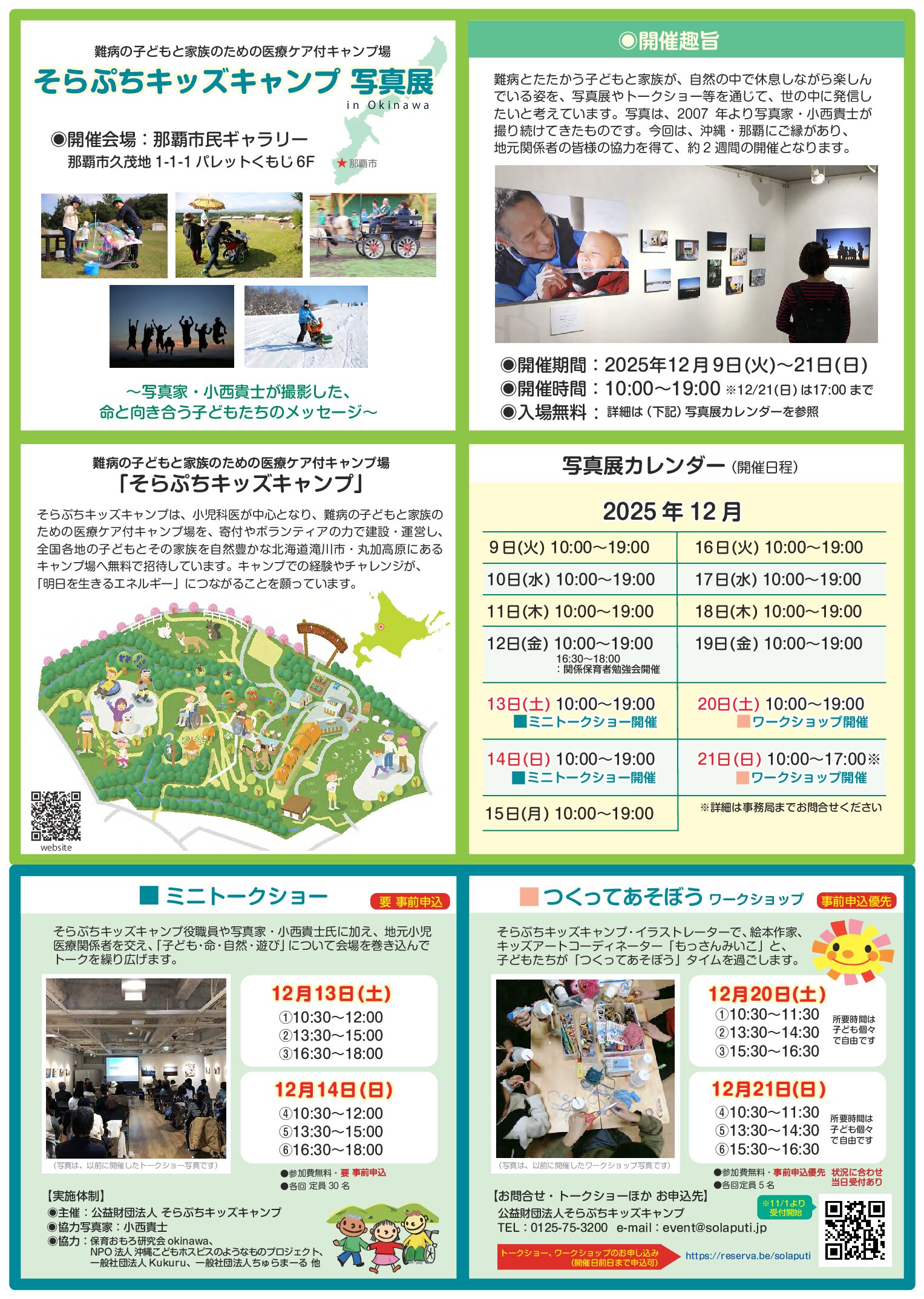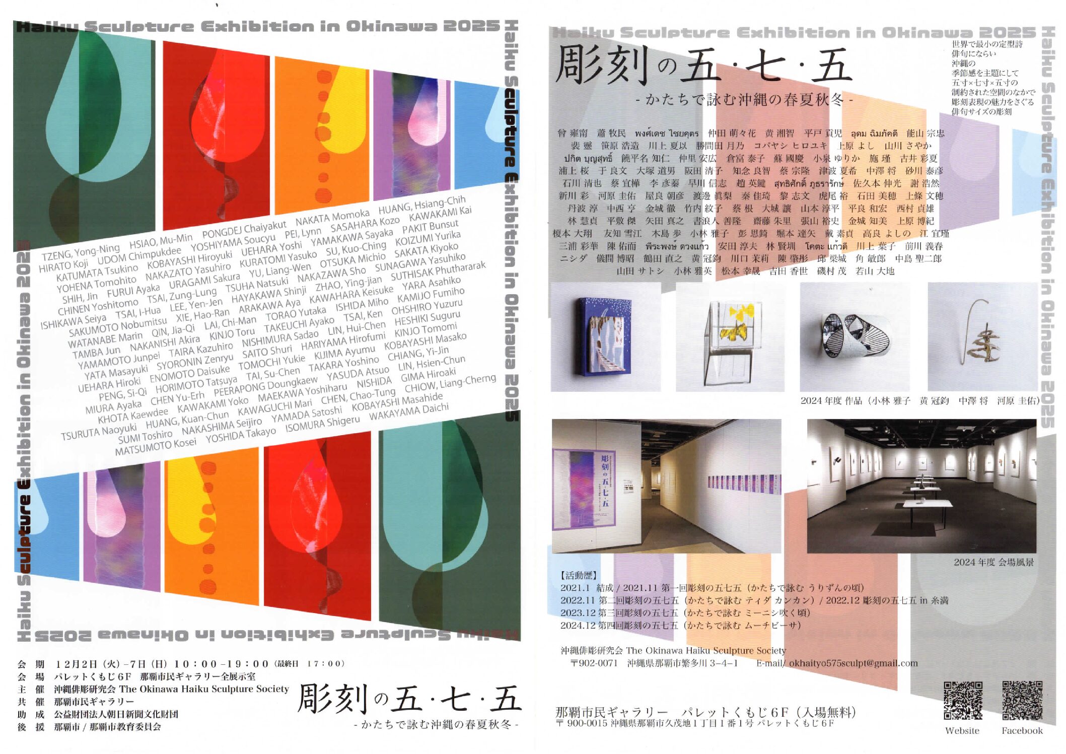 催し物案内 events 今月の催し物一覧はこちら 来月の催し物一覧はこちら 2025年11月25日 伝統アイヌ衣装と国宝琉球紅型~北と南の衣裳文化~ 詳しく見る 2025年11月25日 長浜松蓉書作展 ー振り返る原点 新たな歩みー 詳しく見る 2025年11月25日 手仕事・共生「ゆがふ舎」展in那覇 詳しく見る 2025年12月02日 彫刻の五七五 ーかたちで詠む沖縄の春夏秋冬ー 詳しく見る 2025年12月09日 難病の子どもと家族のための医療ケア付キャンプ場 … 詳しく見る